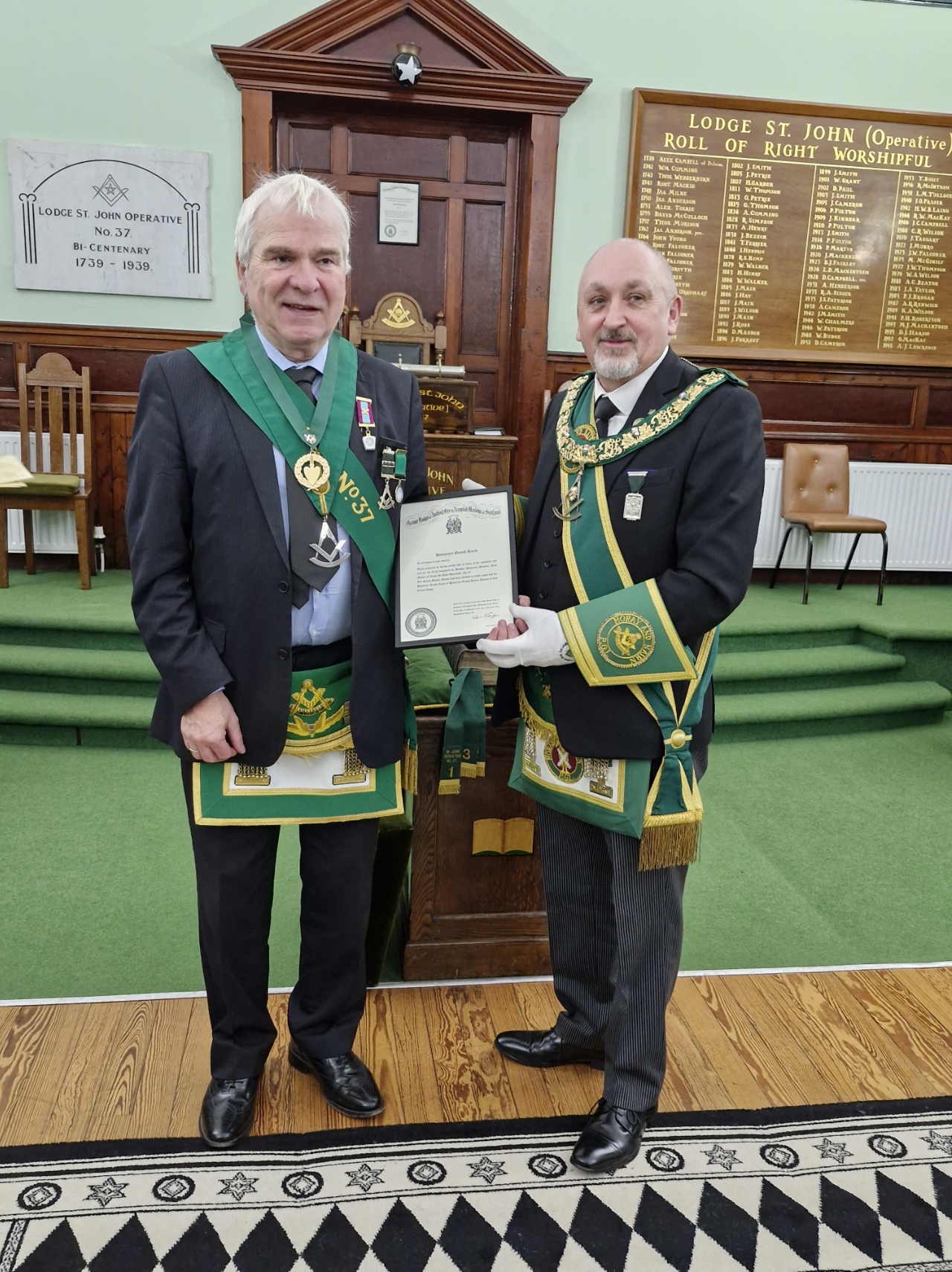 I call upon all Brethren of St John (Operative) No 37 to support your Lodge. Those of you who we may not have seen for some time, a warm welcome awaits. You may not be aware of new website: www.LodgeStJohnOperative37.org, through which you can update your contact details.